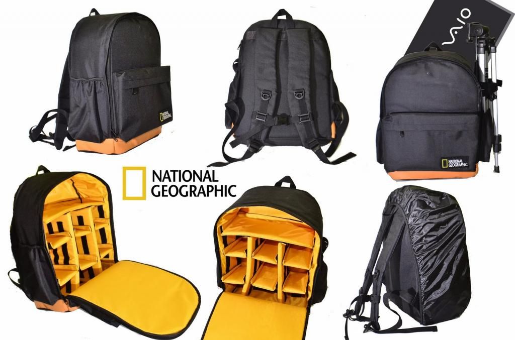 kapasitas 2 DSLR+BG+ 5 lensa+flash+laptop 14"+tripod+jas ujan dan aksesoris.